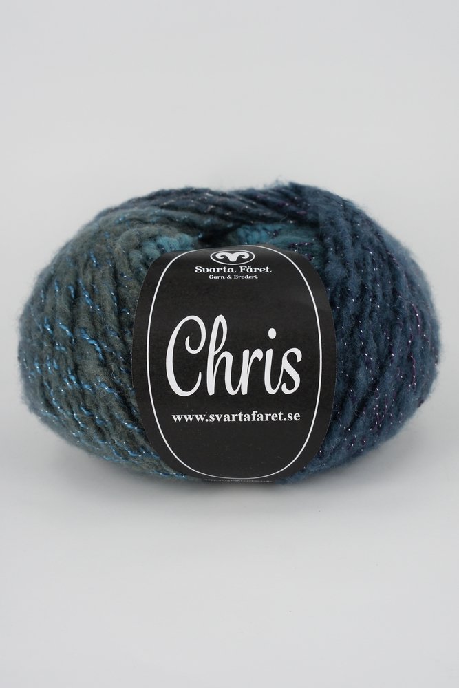 Chris är tillverkat av en mjuk och skön syntet/ullblandning, 11% ull, 2% metallPES, 10% polyester, 77% akryl med en läcker skimrande effekttråd som är tvinnat runt garnet. Ett nystan väger 150 gram och garnet är multifärgat och snabbstickat, passar perfekt till accessoarer och ponchos. Det är 239 meter på nystanet och sträckningen är stickor 10 mm 10 maskor. Tvättas 30 grader skontvätt.