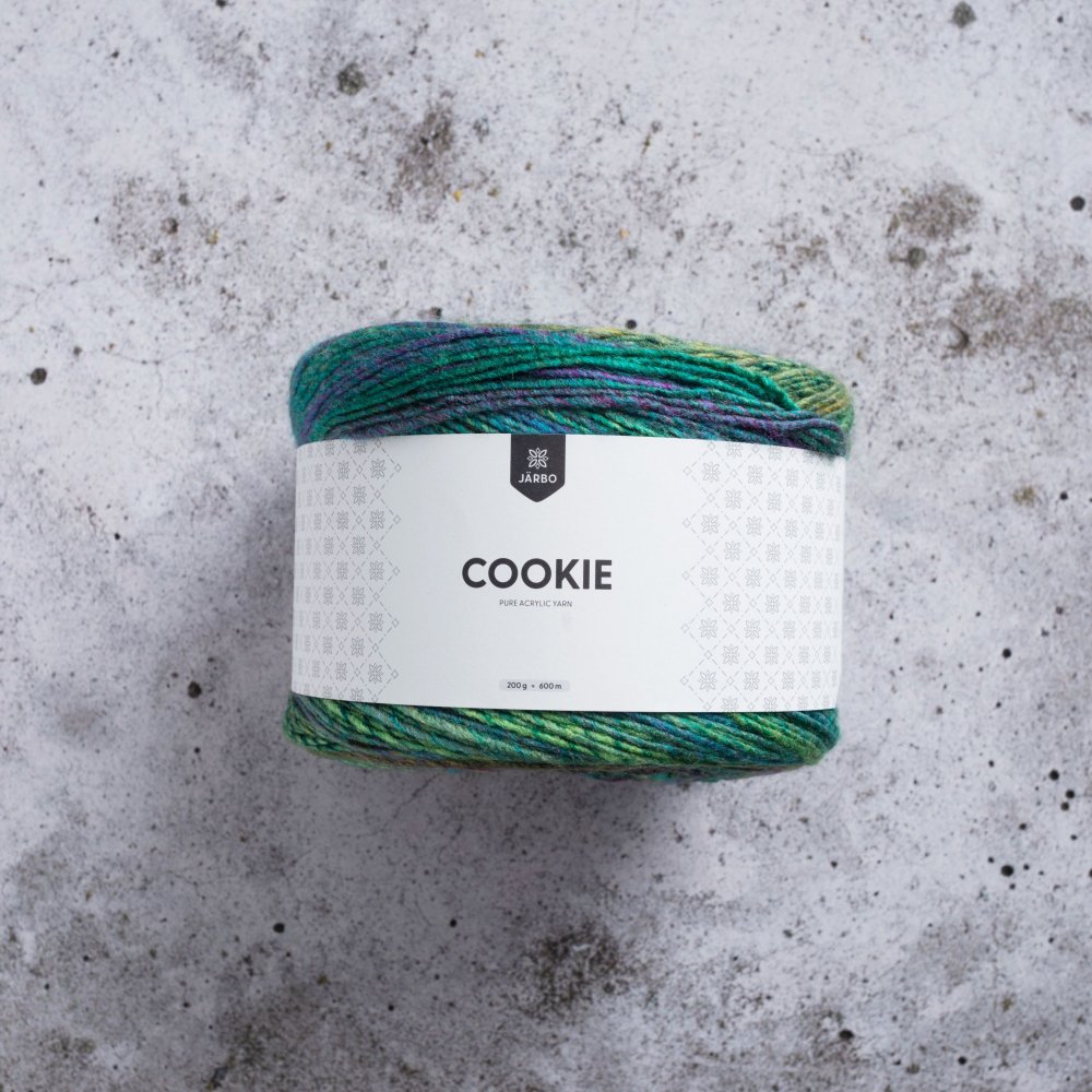 Cookie är ett lekfullt syntetgarn som passar till både stickade och virkade plagg eller accesoarer. De vackra printfärgerna skapar en vacker effekt utan att byta nystan en enda gång. Garnet är OekoTex-certifierat, vilket betyder att du med gott samvete kan använda det i plagg till både stora och små!