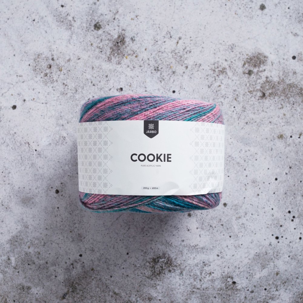 Cookie är ett lekfullt syntetgarn som passar till både stickade och virkade plagg eller accesoarer. De vackra printfärgerna skapar en vacker effekt utan att byta nystan en enda gång. Garnet är OekoTex-certifierat, vilket betyder att du med gott samvete kan använda det i plagg till både stora och små!