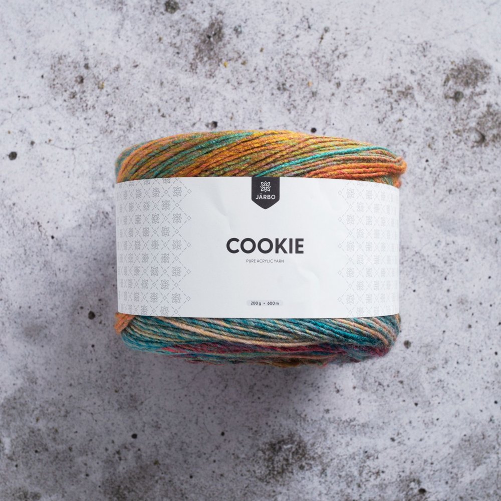 Cookie är ett lekfullt syntetgarn som passar till både stickade och virkade plagg eller accesoarer. De vackra printfärgerna skapar en vacker effekt utan att byta nystan en enda gång. Garnet är OekoTex-certifierat, vilket betyder att du med gott samvete kan använda det i plagg till både stora och små!