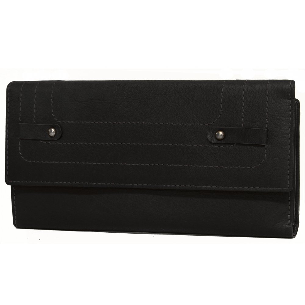 Damplånbok i mjukt kalvskinn. Elegant modell med nitar och dekorativa sömmar.
