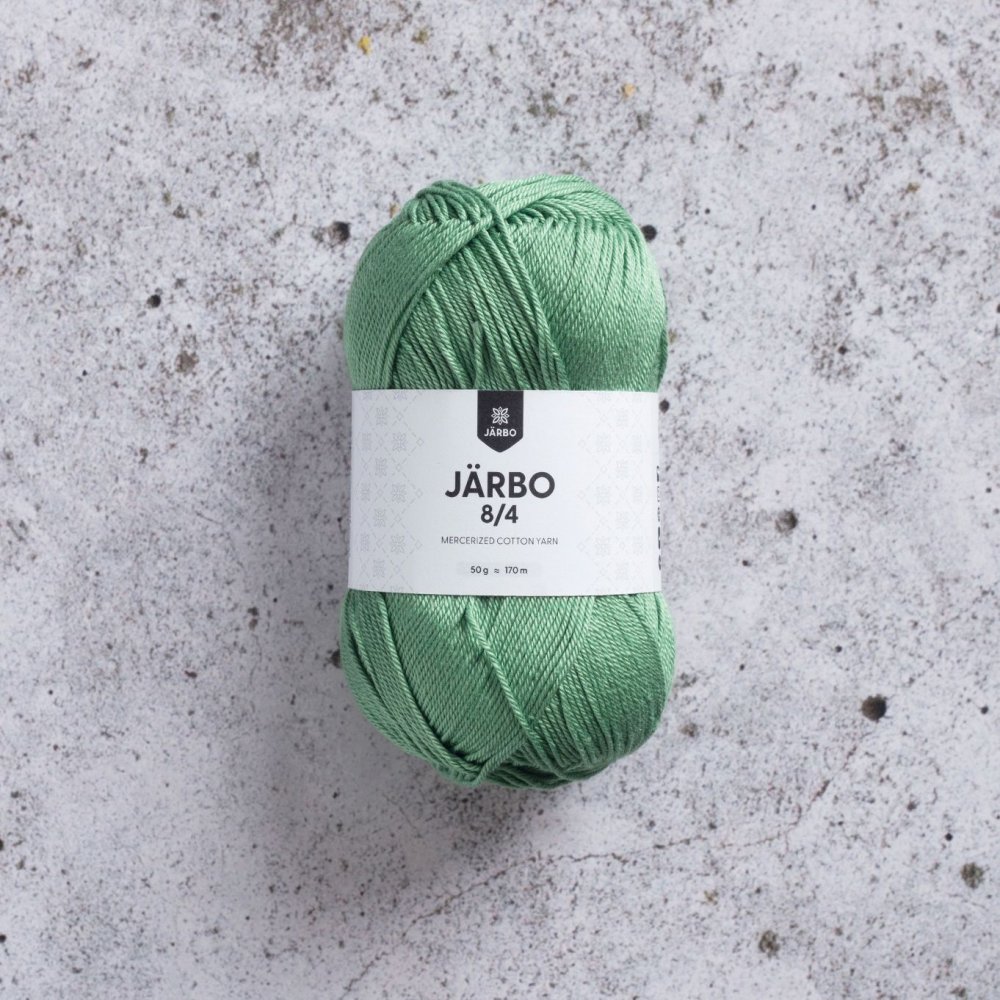 Järbo 8/4 50g - Julgrön (31943)Önskvärt med fler färgnyanser. Fin kvalitet på garnet som jag virkat med Järbo bomull 8/4.
