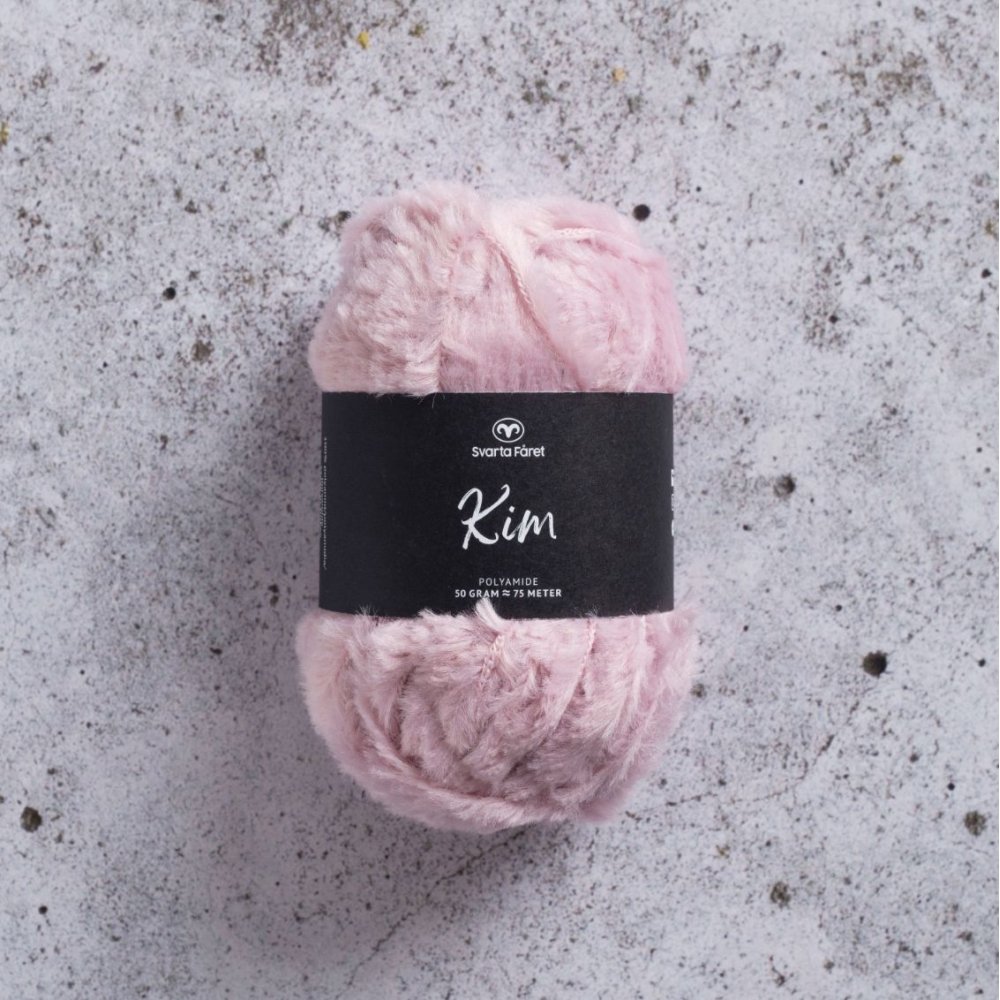 Kim är ett mjukt och härligt ”pälsgarn” som passar utmärkt till detaljer såsom pälskanter, men går lika bra att använda till plag.93% polyamid , 7% polyester. Garnet har en otroligt mjuk känsla och passar lika bra till barn som vuxna, nystanen är på 50 gram och det är 75 meter på ett nystan. Sträckningen är stickor 4,5 mm 17 maskor. Tvättas 30 grader ullprogram