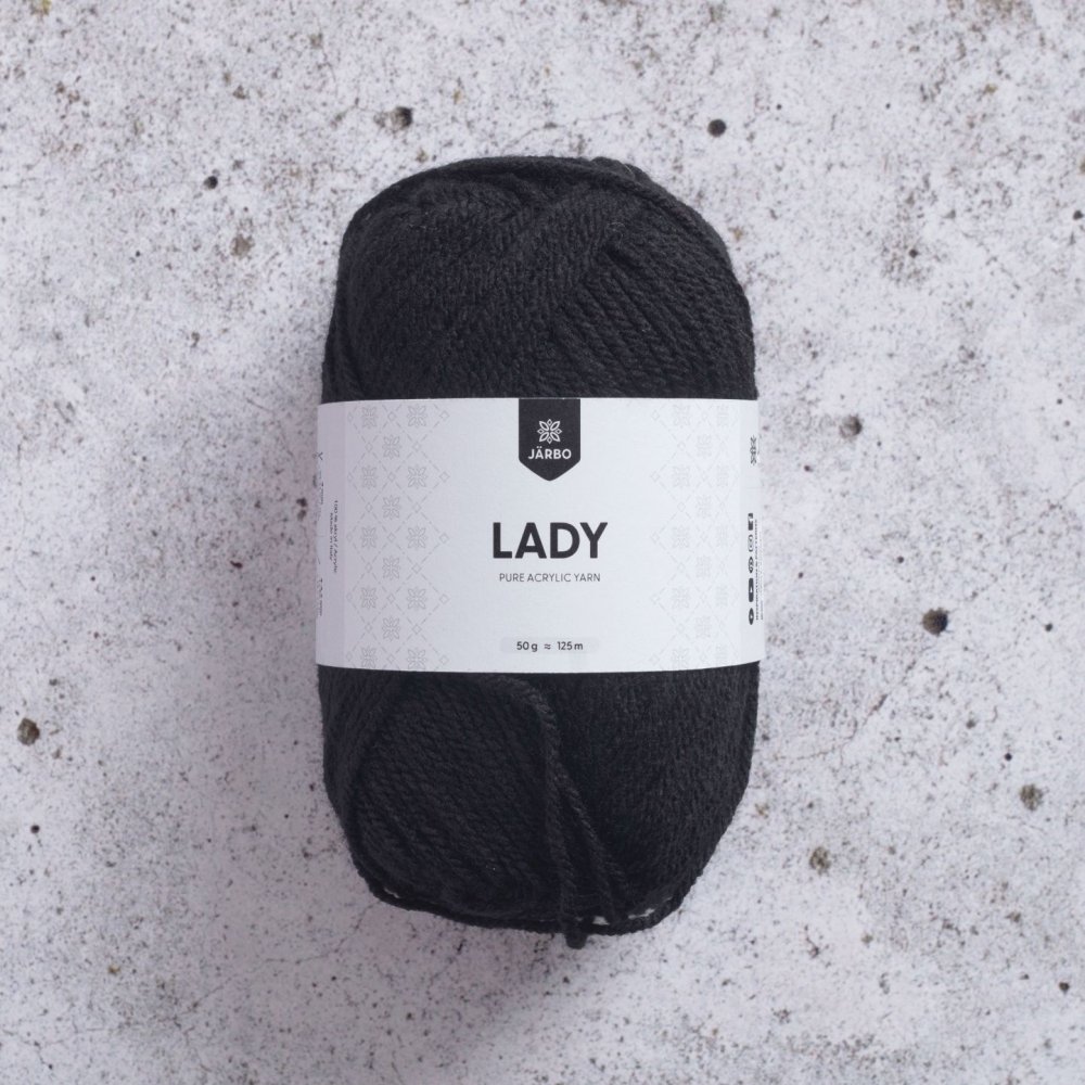 Lady 50g - Svart (32029)Tycker om detta garn.det är mjukt och lätt att jobba med. Gör en halsduk just nu, och gjort baby tossor av samma garn.