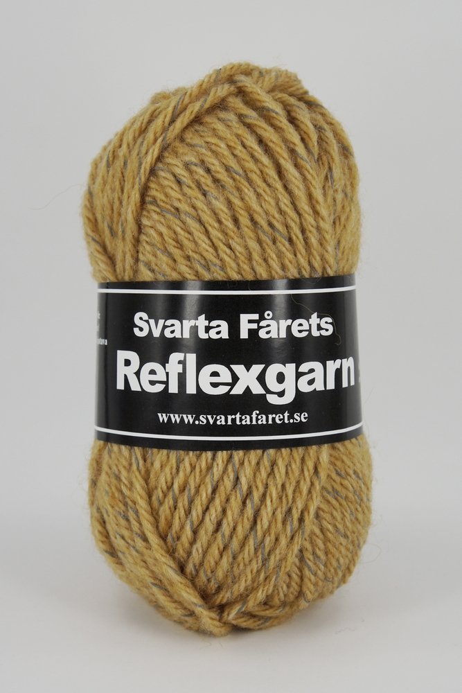 Svarta Fåret Reflexgarn 50g - Senap (36) (81347)Har köpt flera färger av dessa reflex garn och är verkligen nöjd. Har bla virkat band med tofsar i ändarna som dottern flätar in i hästarnas svans när hon rider i mörker. Gjort reflextofsar på mössor och virkat små reflexfigurer.