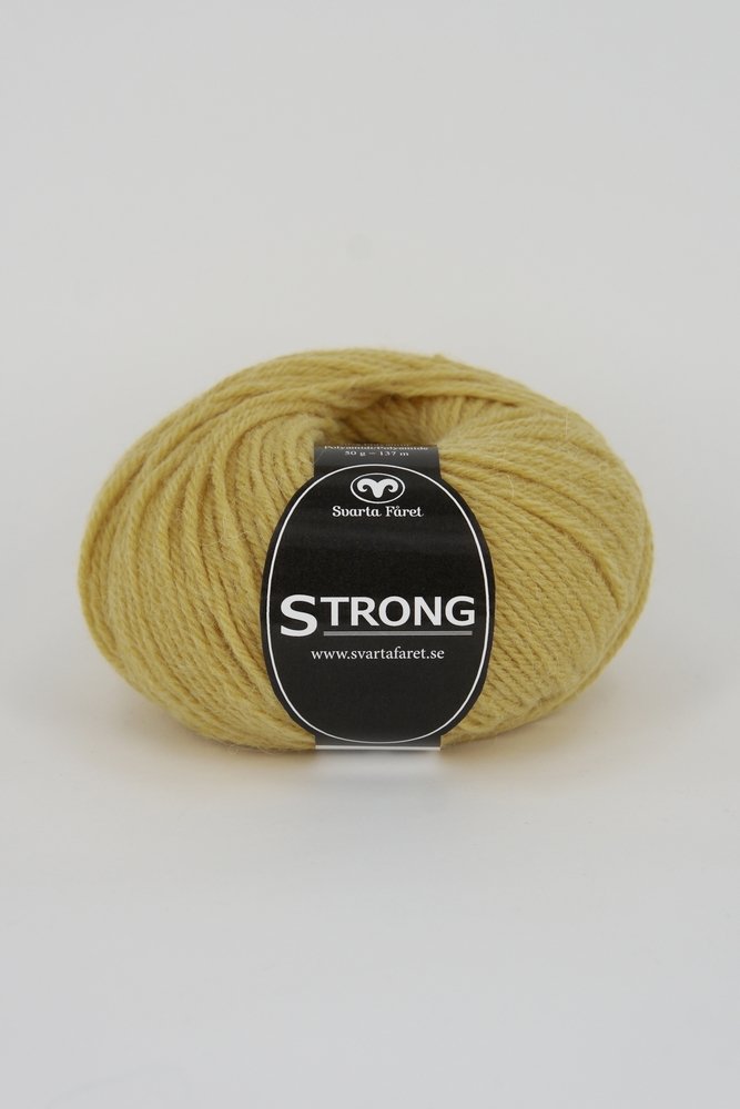 Strong är en mjuk alpacka ,40% , ullblandning 40% med en stärkande polyamid 20% som gör att garnet passar lika bra till både plagg och sockor , då det på grund av polyamiden även blir slitstarkt. Nystanen är på 50 gram och det är 137 meter på ett nystan. Sträckningen är stickor 4 mm 20 maskor. Tvättas 30 grader ullprogram.