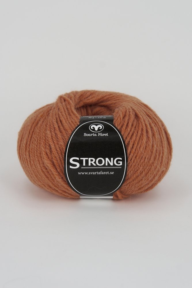 Strong är en mjuk alpacka ,40% , ullblandning 40% med en stärkande polyamid 20% som gör att garnet passar lika bra till både plagg och sockor , då det på grund av polyamiden även blir slitstarkt. Nystanen är på 50 gram och det är 137 meter på ett nystan. Sträckningen är stickor 4 mm 20 maskor. Tvättas 30 grader ullprogram.