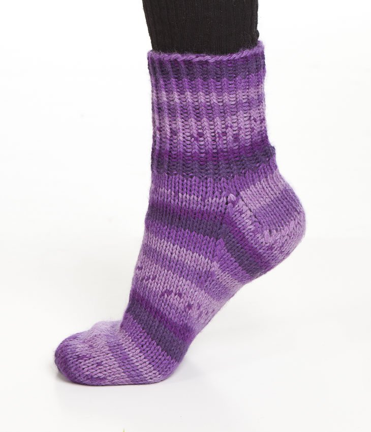 Jättefiint garn och bra att sticka av, blir väldigt fina sockor har stickar flera par i lila.