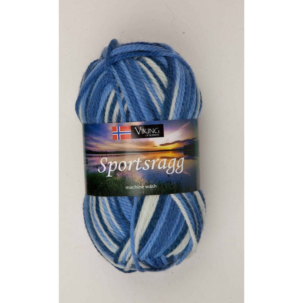 Viking garn Sportsragg 50g - Multi Vit/Blå (525) SR (43971)Mycket bra och prisvärt sockgarn. Blev jättmjuka och smidiga. Kommer att bli min favorit när jag stickar stockar.
